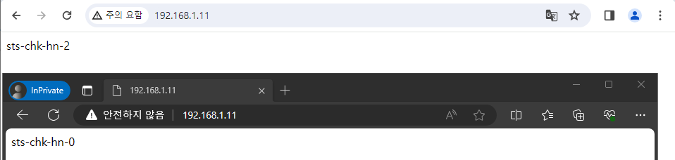 실험3. 로드 밸런싱 되어 있는 ip를 검색하면 다른 결과를 출력 하는 지 확인