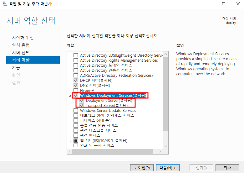 이후 이미지와 같이 Windows 배포 서비스 가 나오면 끝이다.